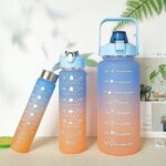 The 3 Pcs Rainbow Bottle Set includes small, medium, and large bottles?typically 300 ml, 900 ml, and 2 L sizes?featuring vibrant rainbow gradient or frosted finishes. Made from BPA?free plastic, each bottle has leak?proof caps, wide?mouth openings, and motivational markings to encourage hydration. Stylish, durable, and portable, they?re perfect for school, gym, travel, or daily use