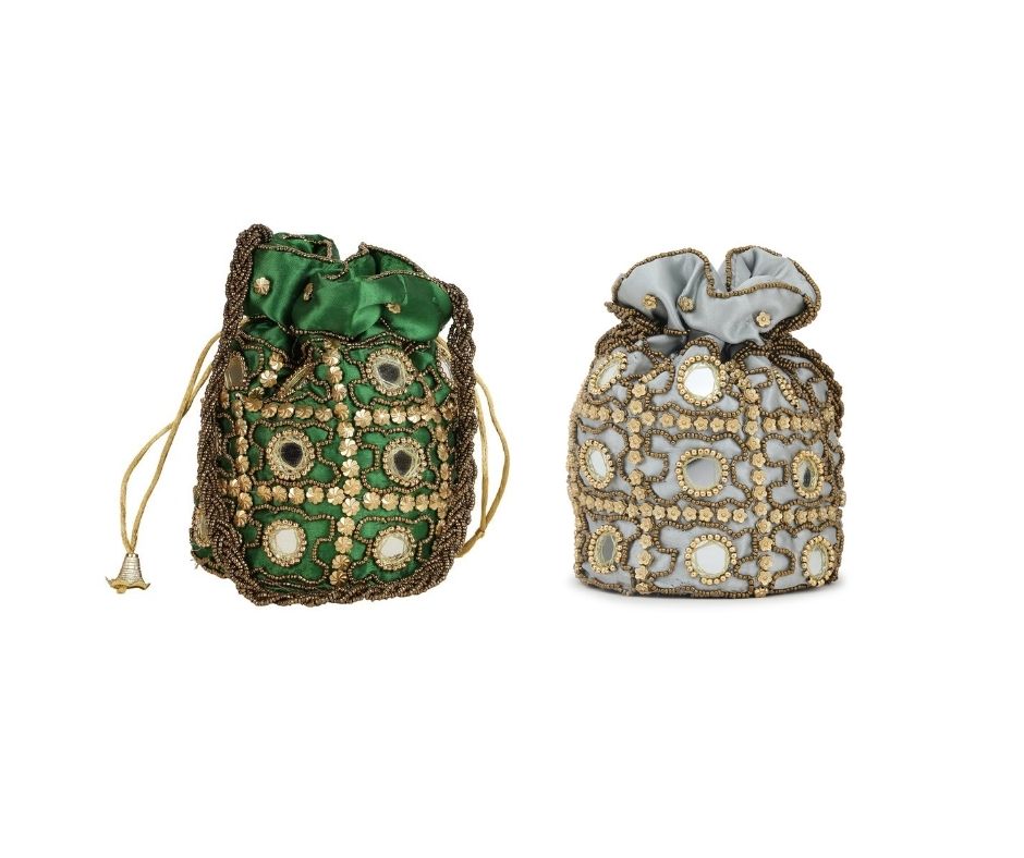Combo – Designer Embroidered Potli Bag – Golden & Green