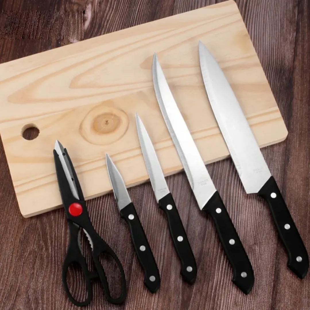 The 6in1 Knife + Wooden Chopping Board Set is a practical and space-saving kitchen essential that combines functionality with style. Perfect for everyday cooking tasks, this set equips you with the right tools for chopping, slicing, dicing, and preparing meals with ease.