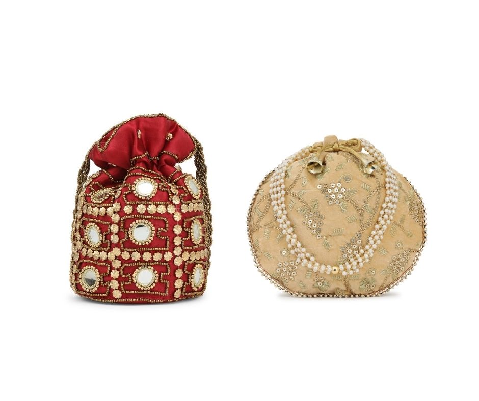 Designer Embroidered Potli Bag Combo- Golden & Maroon