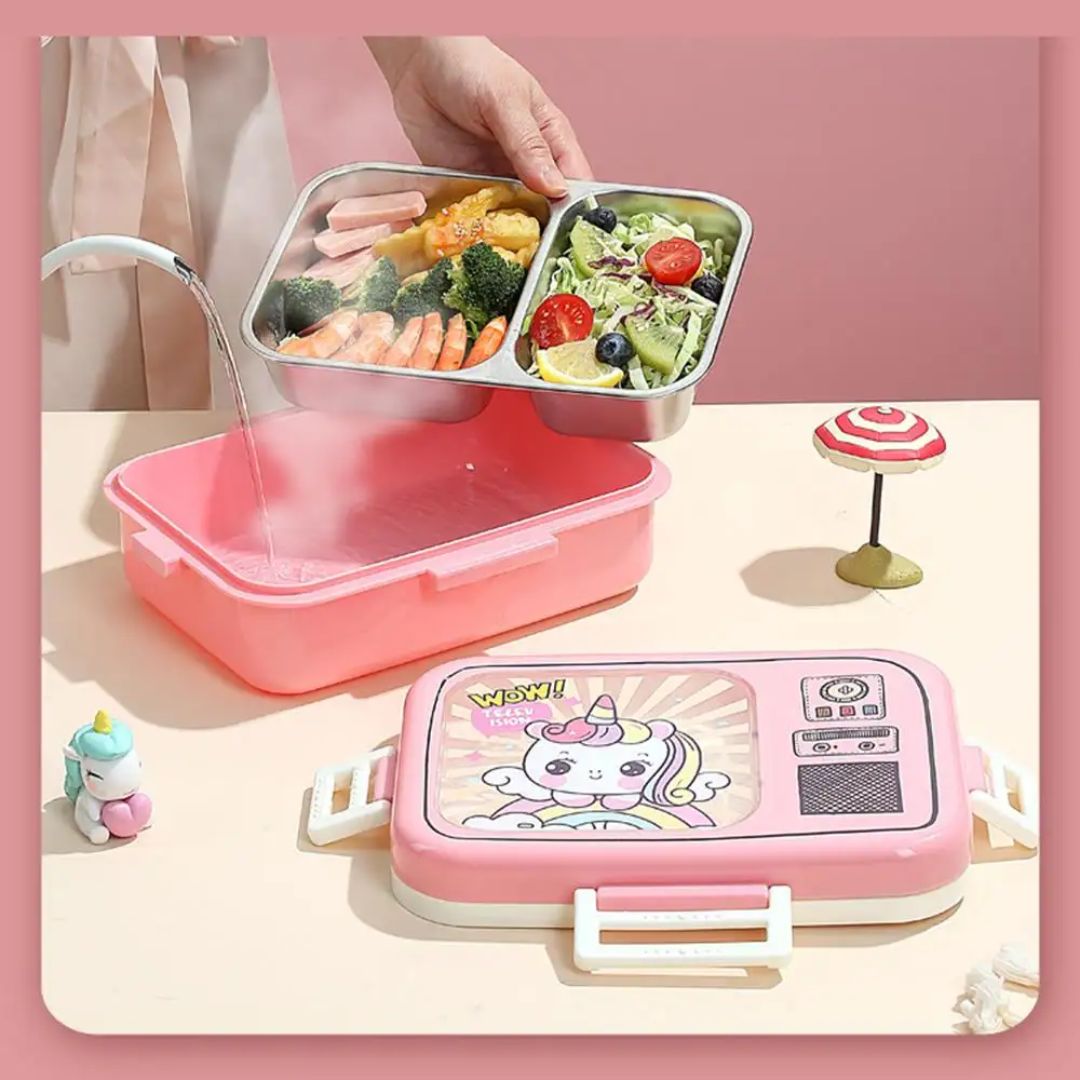 This Kids Printed Stainless Steel Lunch Box features 3 divided sections to keep food neatly separated. With fun prints and a leak-proof design, it?s perfect for school lunches?durable, hygienic, and easy for kids to carry.