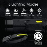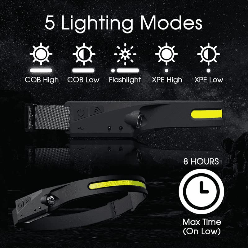 The LED Headlamp lights up the entire area in front of you from a lightweight headband.COB LED lights are positioned on a flexible strip to provide a 230? area of illumination.The lightweight,Ultra Lowprofile design is comfortable to wear and adjustable to any head size or even to fit over hats. This LED Headlamp provides a wider,brighter light than any teaditional headlamp.From camping to walking the dog at night and running at night, this is the ideal accessory for portable hands-free lighting.