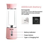 Plus Portable Blender For Juices, Shakes, Smoothies, Baby Food & More | 230W | 4000mAh Rechargeable Battery | Crushes Ice, Carrots, Beetroot, Dry Fruits | USB-C Protected Charging Port | 500ml Capacity Inbuilt Jar – Pink