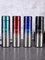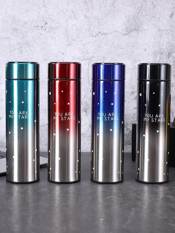 The Printed Space Star Temperature Bottle combines futuristic style with smart functionality. Featuring a cosmic-themed print and digital temperature display, this stainless steel bottle keeps your drinks hot or cold while adding a fun, trendy touch.