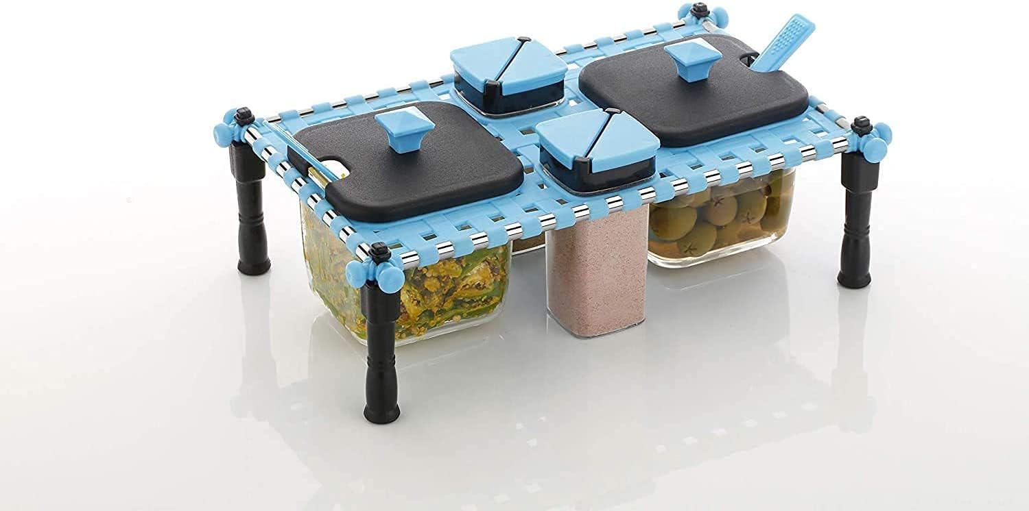 Home Home and Kitchen Traditional Indian Cot Type Spice and Pickle Container Set CharPai Aachar Set Kitchen Utensil Salt and Pepper Set for Dining Table (Khatli – Charpai)
