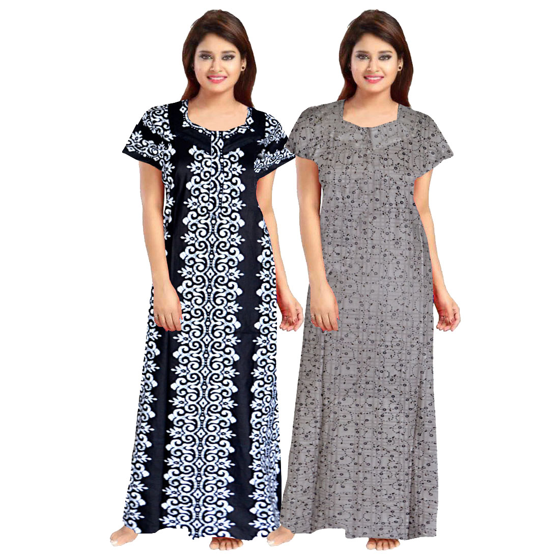 Home Nightgown Women’s Full Length Cotton Cotton Printed Maxi Nighty Combo Pack Of 2