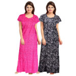 Women’s Full Length Cotton Cotton Printed Maxi Nighty Combo Pack Of 2 (Black)