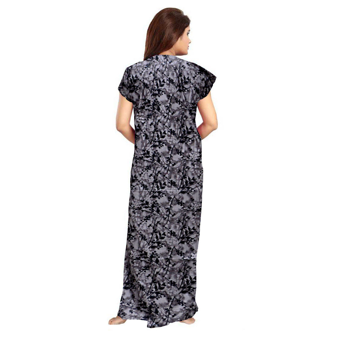 Women’s Full Length Cotton Cotton Printed Maxi Nighty Combo Pack Of 2 (Grey)