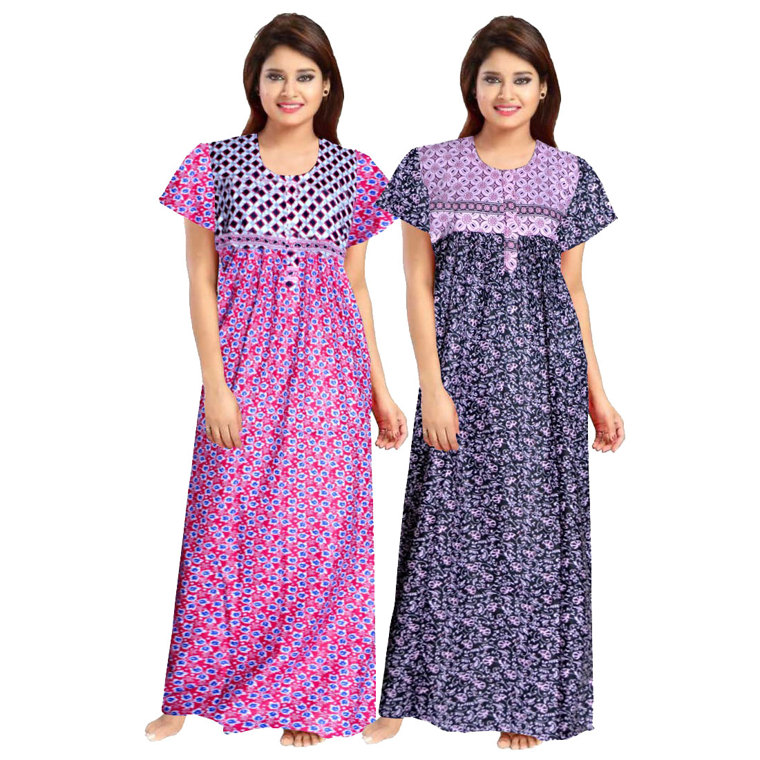 Home Nightgown Women’s Full Length Cotton Cotton Printed Maxi Nighty Combo Pack Of 2